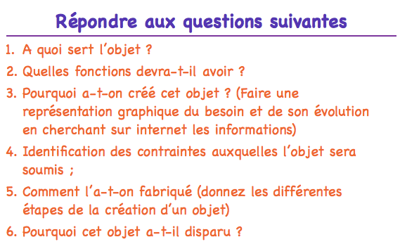 En utilisant les fiches RESS-A1 ;RESS-A3 ; RESS-A4 ; RESS-A5 - vous tenterez d'étudier un objet de votre choix différent des exemples.